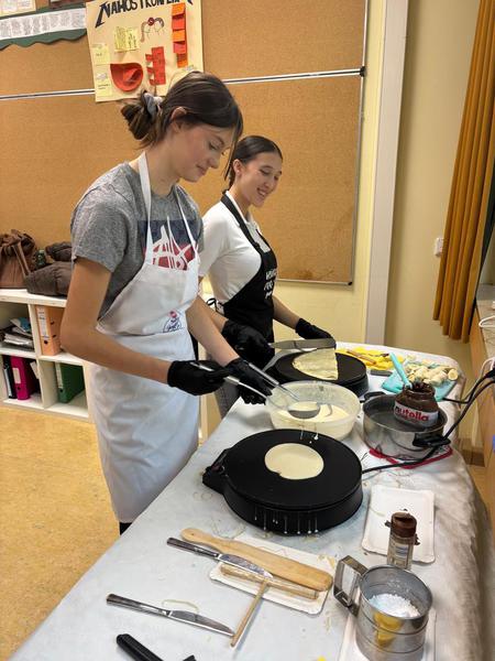 Auch zu essen gab es reichlich. Der Elternbeirat verkaufte Kuchen und Bratwurstbrötchen. Angeboten wurden von den Klassen noch selbst gebackene Crepes, Popcorn und frisch gemixte Smoothies.