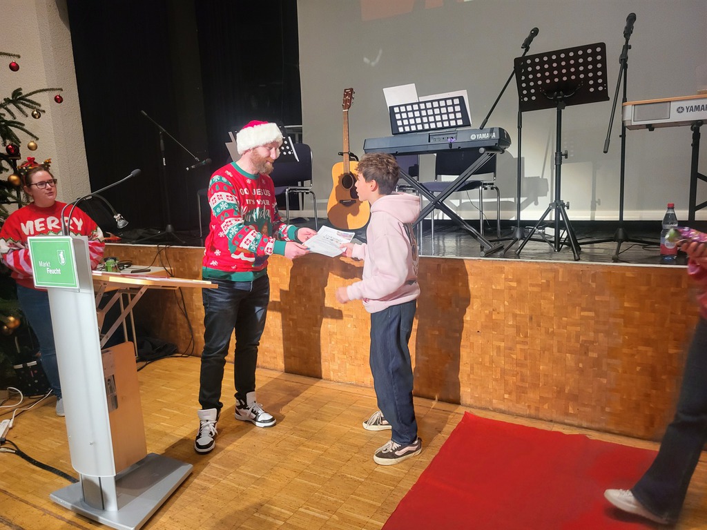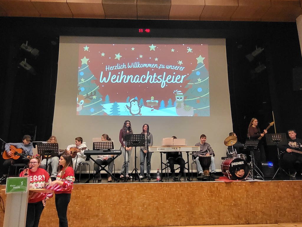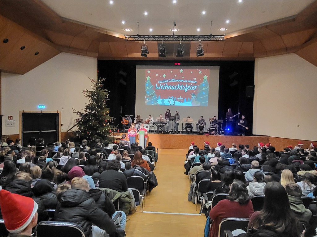 Herzlichen Dank an Frau Hofmann und Frau Schnölzer-Virnekäs für die Organisation der Weihnachtsfeier, an Frau Meiler für die musikalische Begleitung mit der Schulband, an alle Lehrkräfte, die mit ihren Klassen Programmpunkte beigesteuert haben und natürlich auch an unsere Hausmeister für die Erledigung aller anfallenden Arbeiten bei Aufbau und Abbau.
