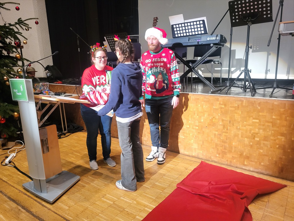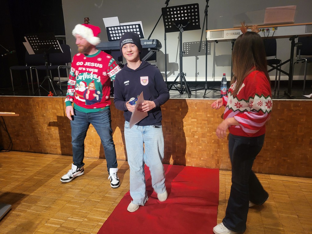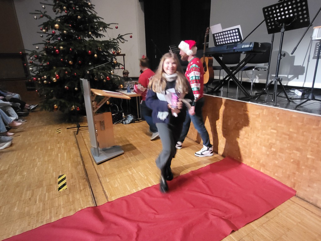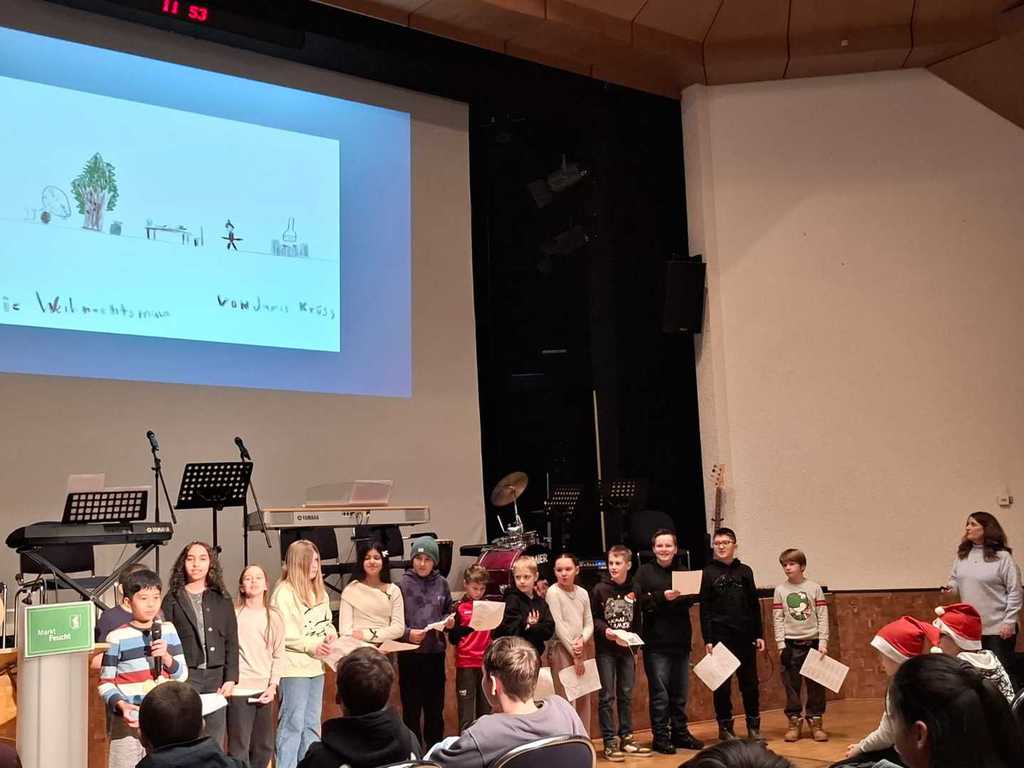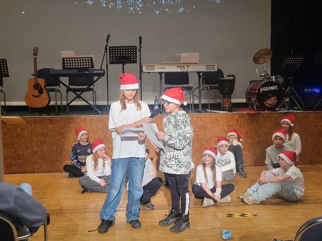 Mehrere Klassen unterhielten ihre Mitschülerinnen und Mitschüler mit den verschiedensten Darbietungen. Es gab ein Gedicht über eine Weihnachtsmaus, die Kekse verschwinden lässt sowie ein Lied darüber, dass Nächstenliebe nur dann möglich ist, wenn man sich selbst wertschätzt.