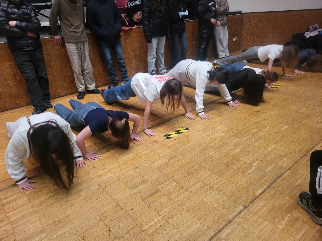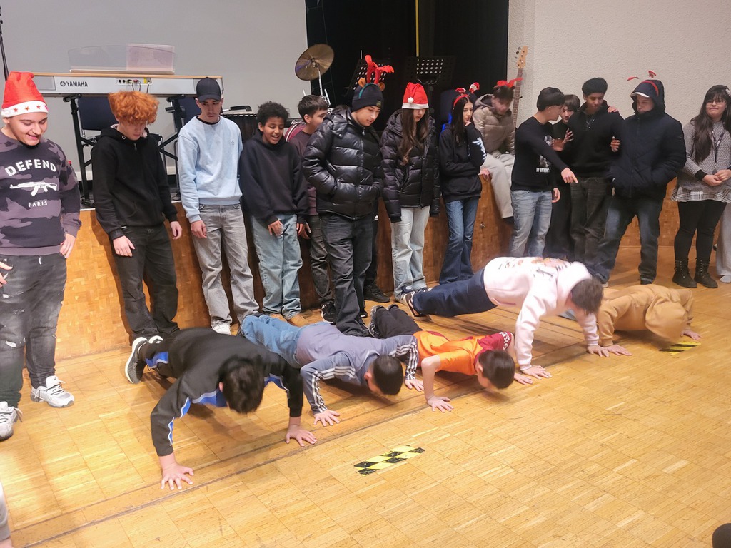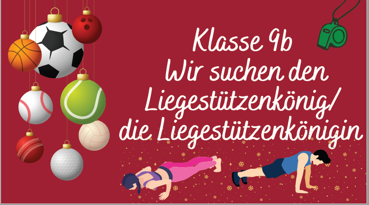 Es wurden die Liegenstützenkönigin/der Liegenstützenkönig gesucht. Bei einem Kahoot konnten die Klassen ihr Wissen über Weihnachtsfakten testen.