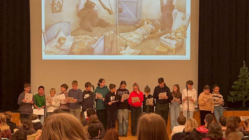 Verschiedene Klassen hatten kleine Programmpunkte vorbereitet und führten diese vor der voll besetzten Reichswaldhalle vor. Aufgeregt waren sie alle, haben aber alles wunderbar und kurzweilig präsentiert und wurden mit viel Applaus von ihren Mitschülerinnen und Mitschülern belohnt.